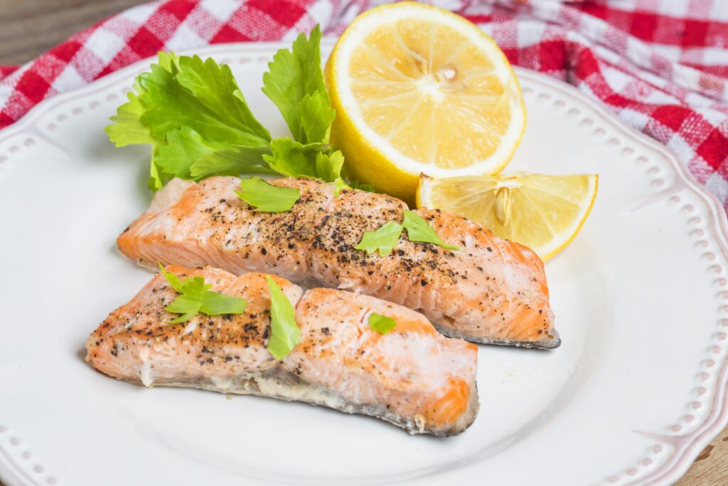 Sprinkle the trout and the asparagus with salt and pepper. Add minced garlic on top of the trout fillet and asparagus. Top with lemon slices. - STEP 6